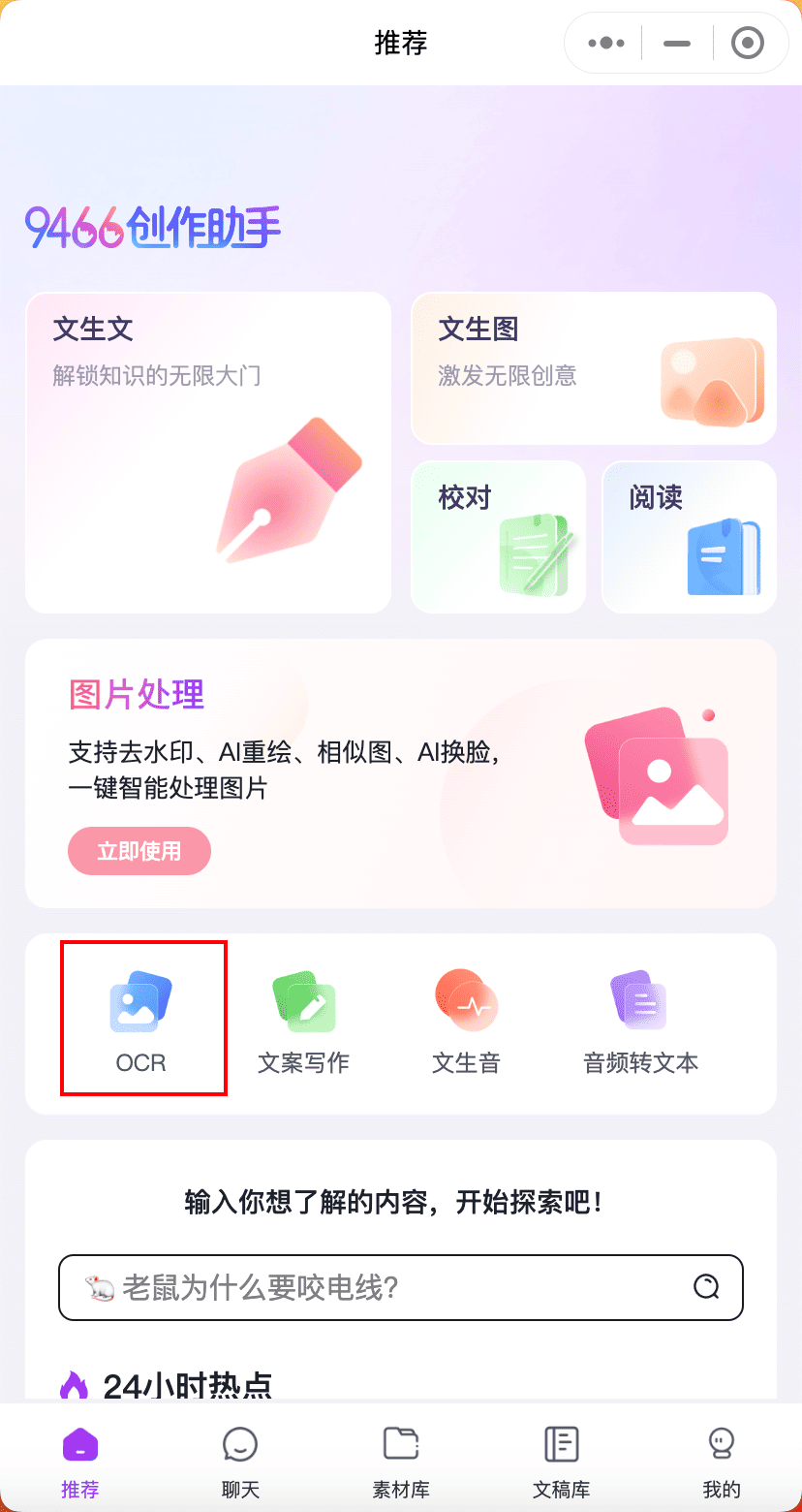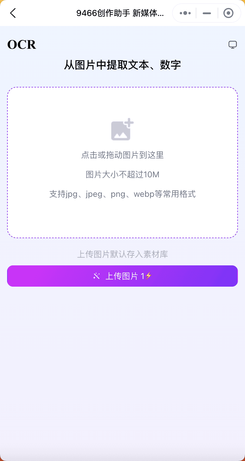 点击【OCR】模块,上传想要从中提取文字的图片,读取图片上的文字。