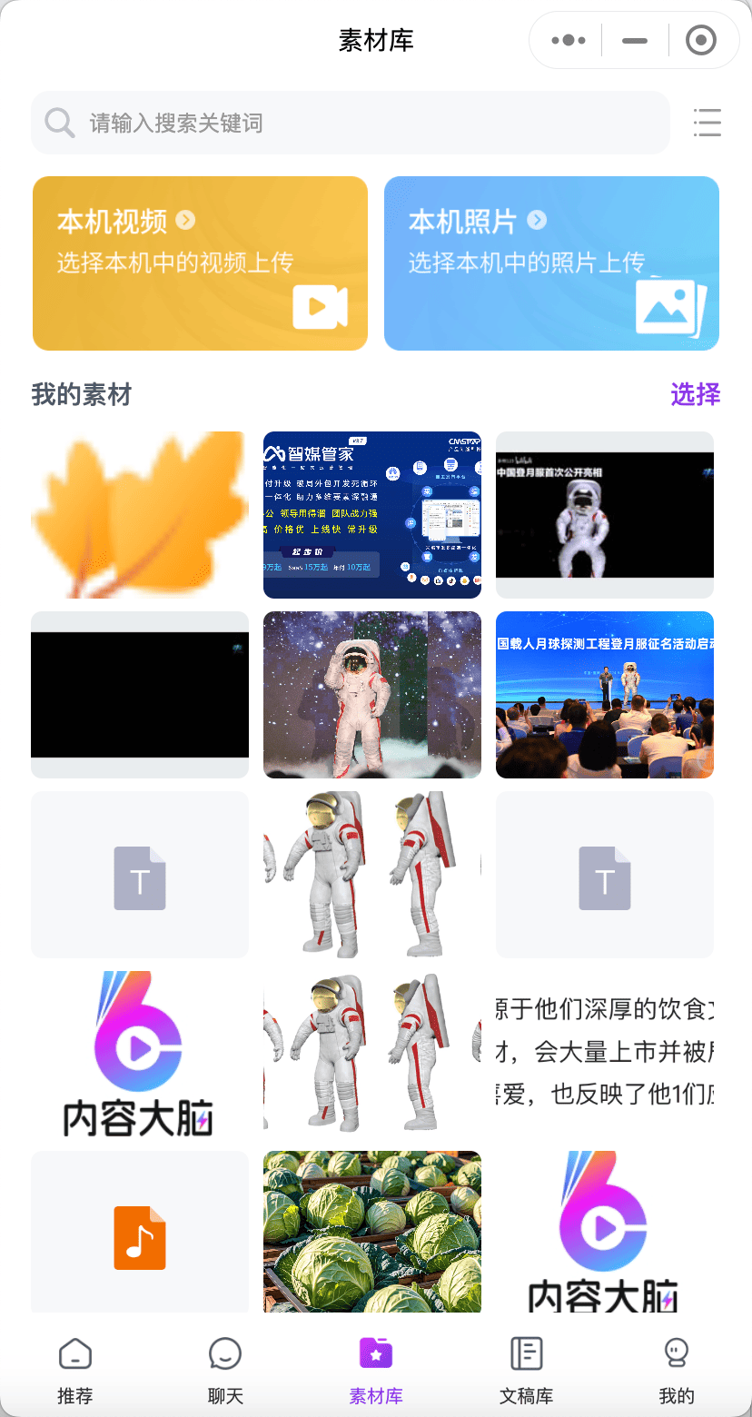 可以将以往查找的资料和收集的素材都放在素材库里方便查找。