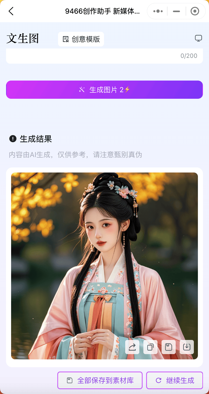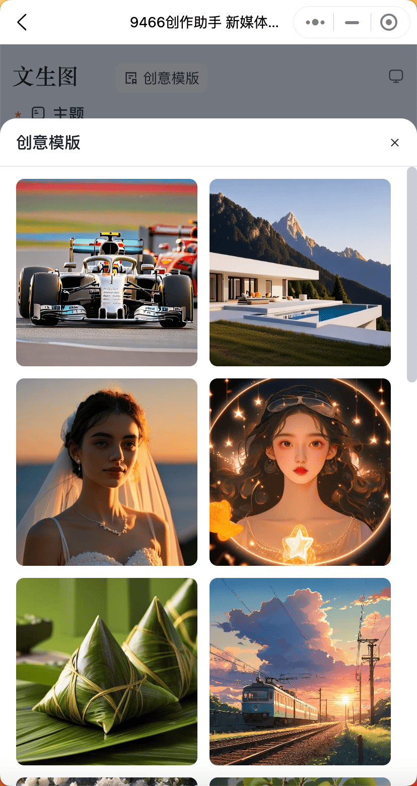 为了快速生成您想要的图片,您也可以选择“创意模版”来快速生成图片。